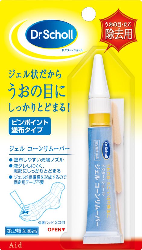 【ドクターショール】ジェルタイプのうおの目・たこ・いぼ除去用医薬品【フットケア】ドクター・ショールジェル コーンリムーバー (保護パッド 3コ付)740-75 価格: 1,050円 レビュー評価:0.0 レビュー数:0 商品出荷予定: 通常2?6日 ●内容量:5g(保護パッド 3コ付)●JANコード:4986803804433●使い方:取り扱い説明書をよくお読みの上、ご使用ください。 ジェルが患部以外の部分に広がらないように注意してください。 ■■■■■■■■■特長■■■■■■■■■ 有効成分サリチル酸15%を配合したうおの目・たこ・いぼ取り専用の医薬品。 うおの目・たこ・いぼをやわらかくふやけた状態にし、除去しやすくします。 独自に開発した先細ノズルで簡単に適量を塗布できます。 ジェルが患部にしっかりと密着し、さらに乾燥したジェルが水をはじく為、 いつも通り入浴でき、固定用のテープは必要あり Supported by 楽天ウェブサービス |